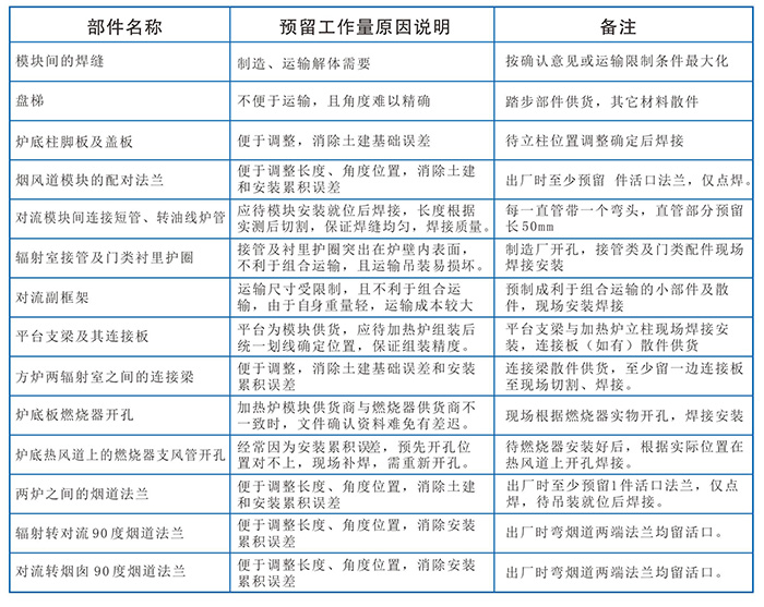 加熱爐及其它爐類產(chǎn)品可進行工廠模塊化設(shè)計、預(yù)制、運輸及現(xiàn)場安裝。采用思路:工廠深度預(yù)制一部件組合運輸一現(xiàn)場快速組對安裝、調(diào)試。加熱爐模塊化設(shè)計及工廠模塊預(yù)制的優(yōu)點有:供貨范圍和各方責(zé)任清晰明確、減輕業(yè)主采購工作量、減少現(xiàn)場施工量及制作場地、能更好的保證施工工期和質(zhì)量、減少現(xiàn)場施工量及制作場地。我們可根據(jù)設(shè)計總圖提前進行模塊化設(shè)計、確定模塊預(yù)制方案、模塊運輸方案及現(xiàn)場拼裝方案,再報業(yè)主和設(shè)計方確認,從而節(jié)省設(shè)計時間。隨著加熱爐大型化的趨勢,以及道路運輸?shù)倪M一步規(guī)范,工廠預(yù)制模塊的尺寸設(shè)計應(yīng)盡量能控制在:長22米,寬3.0米,高度3.3米以內(nèi)。